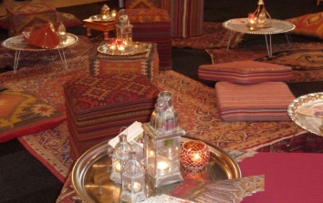 Heeft u een 1001-nacht decor nodig voor uw feest, dan kunt u bij Arabeska allerlei spullen huren zoals oosterse tenten, kussens, kaarsen, tafels, poeven, thee accessoires, lichten, waterpijpen e.d.